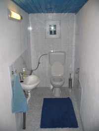 A zuhanyzóhoz villanybojler szolgáltatja a melegvizet.