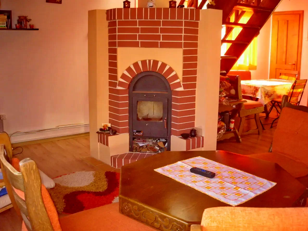 Társalgó kábel TV-vel és kandalóval