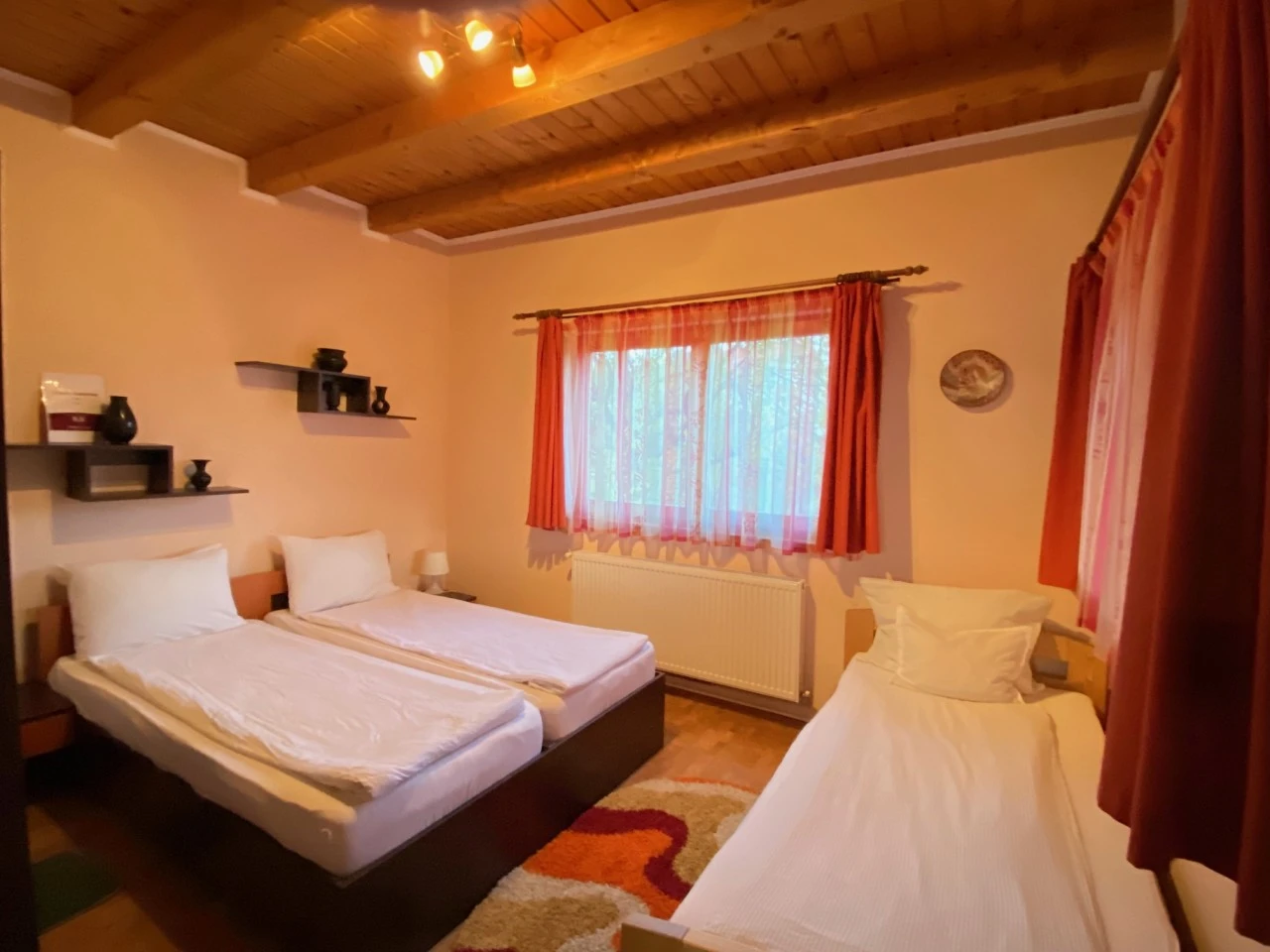A vendégek kényelmét a csodálatos kilátás a Firtoshegyre (Hargita megye természetvédelmi területe), fedett terasz, fűves udvar, kényelmes 2 ágyas szobák, modern konyha felszerelve, társalgó kandalóval és kábel TV-vel, egy fürdőszoba biztositják.