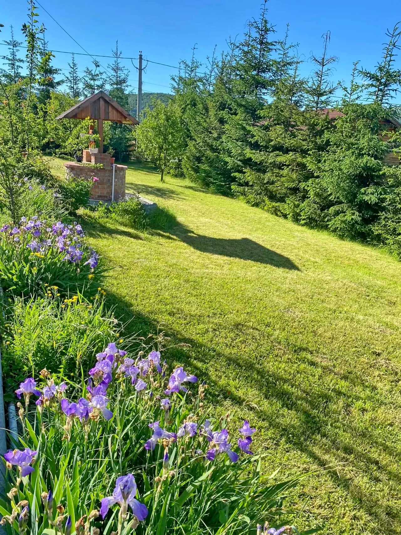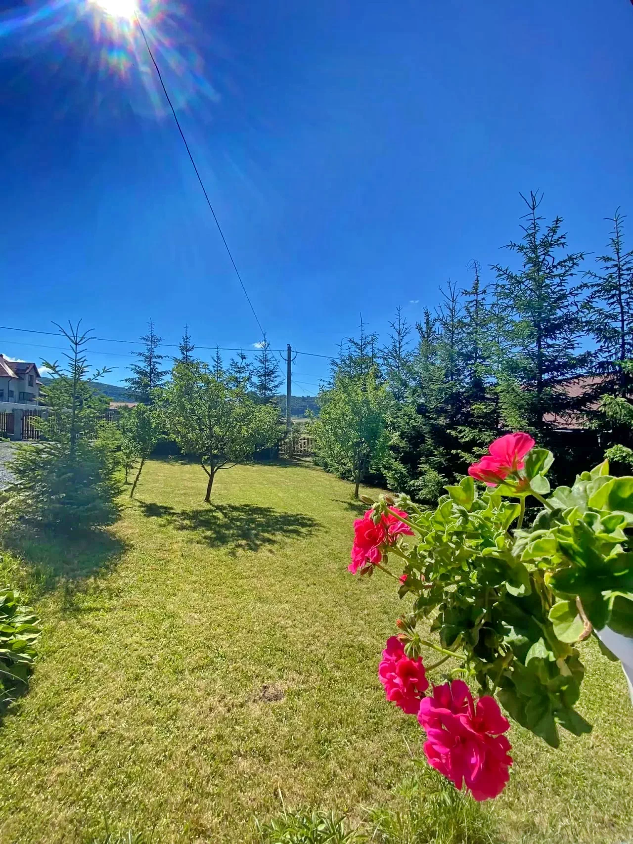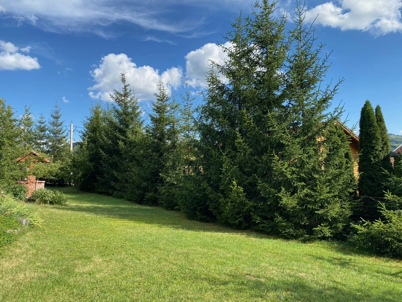Tágas, fűves udvar