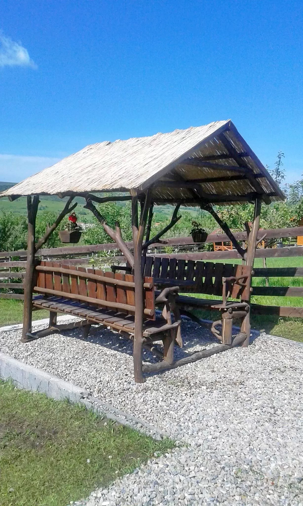 1 nagy fedett terasz kertibutorral.