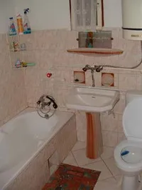 Fürdő I: fürdőkád + kézmosókagyló + vízöblítős WC