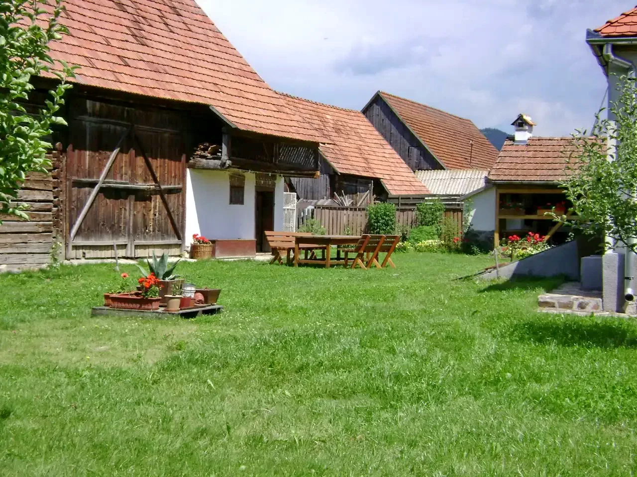 - A kertben szabadtéri asztalok és filegória is található.