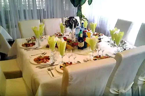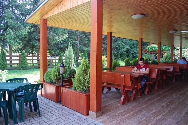 - A panzió saját étteremmel rendelkezik, amely 60 férőhelyes, és hagyományos román, valamint nemzetközi ételeket kínál "à la carte" menü alapján.