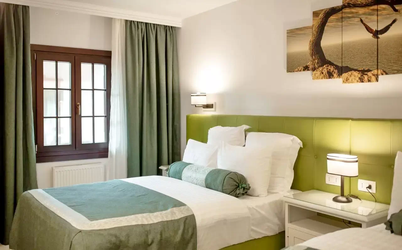 - Superior 4 fős szoba - 2 db franciaágy - 34 nm a hotel földszintjén találhatóak, saját terasszal rendelkeznek.