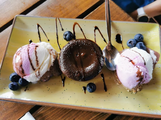 - Étkezési lehetőségeket biztosít az étteremben és a teraszon, lehetőségeket kínál különféle szabadtéri programokhoz, például piknikező hely, pavilon, kemence, grill, bogrács, játszótér gyermekek számára, valamint parkoló.