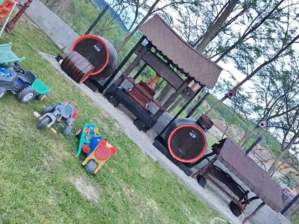 A parkosított udvarban - nagy szabadidős felületen - kerti bútor, tűzrakóhely, (akár tábortűz számára), gyógyvizzel töltött nagy cseber, filegória, gyerek játszótér és őrzött parkoló áll a kedves vendégek rendelkezésére.