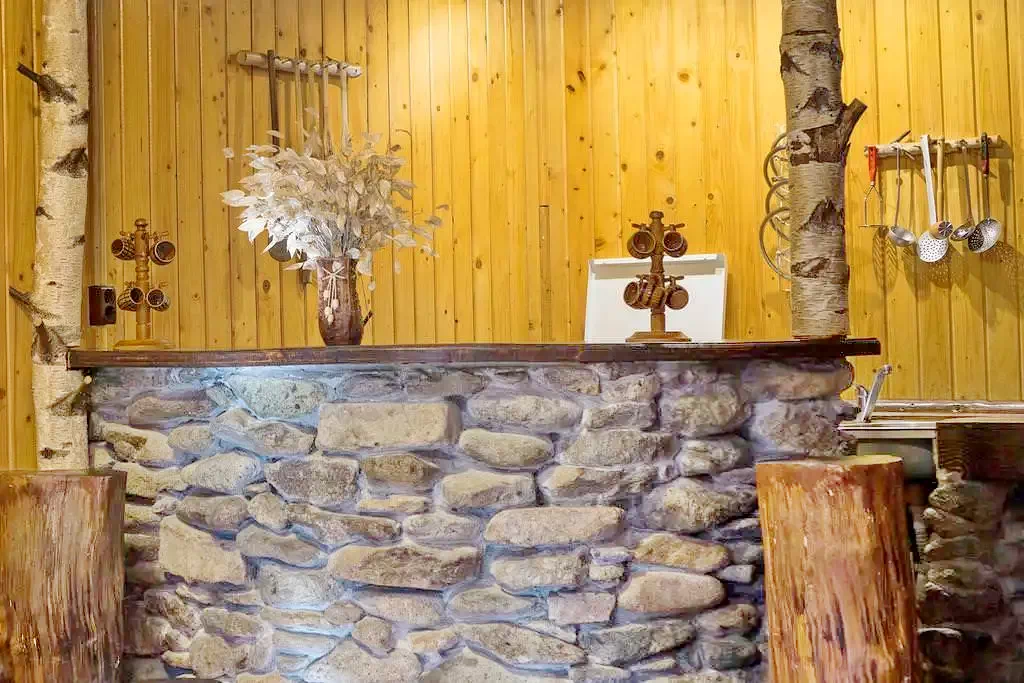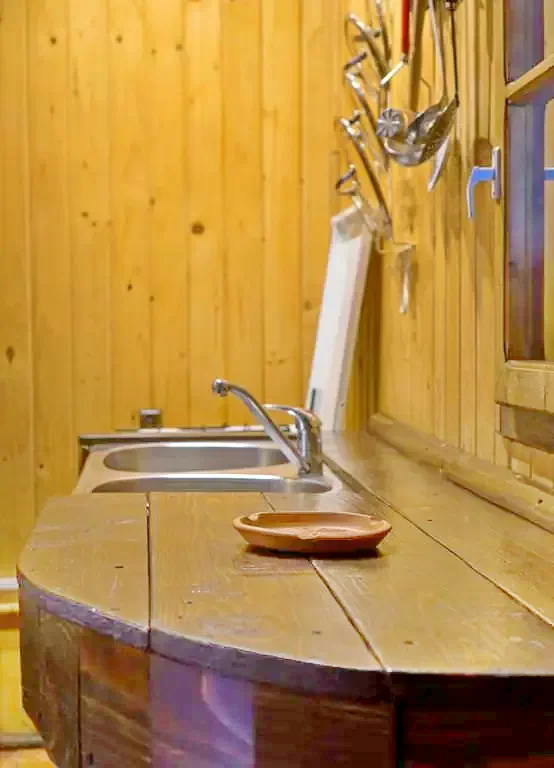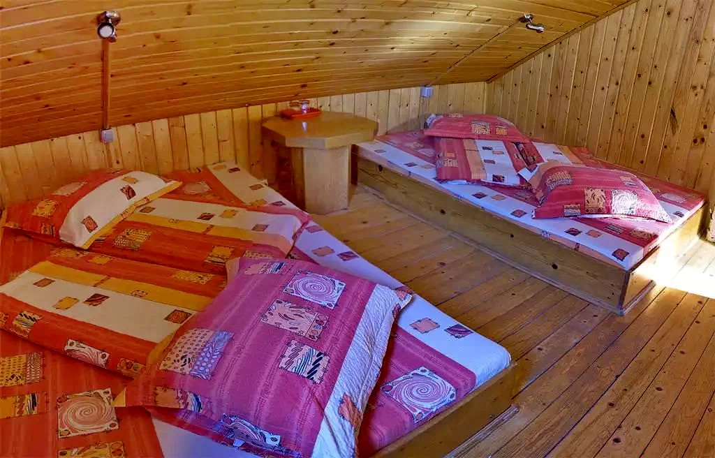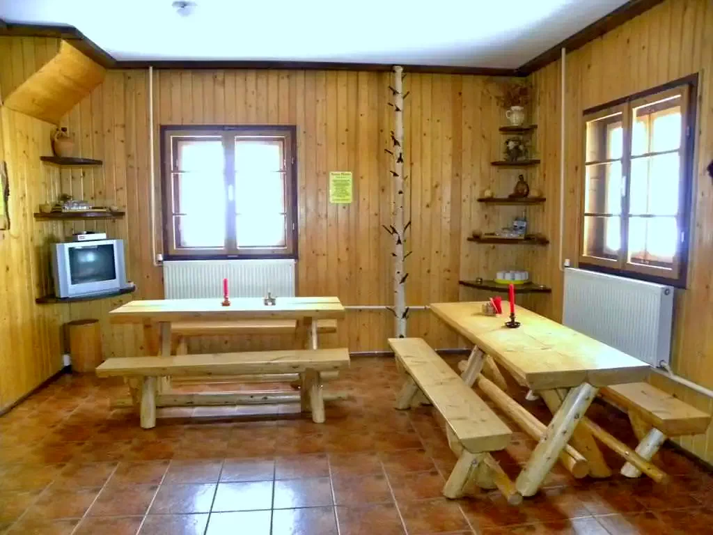 - Tágas, kandallóval felszerelt nappalival rendelkezik. Hűvös napokon a kőből épült kandalló tüze meghitt hangulatot és kellemes hőmérsékletet biztosit az ebédlőben. A kandallóban található fa egy alkalomra ingyenes. A meleget fa tüzelésesű kazánnal, központi fűtéssel biztositja.