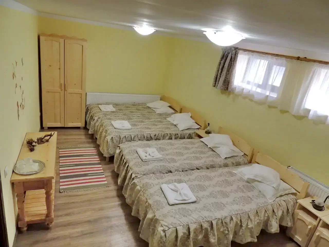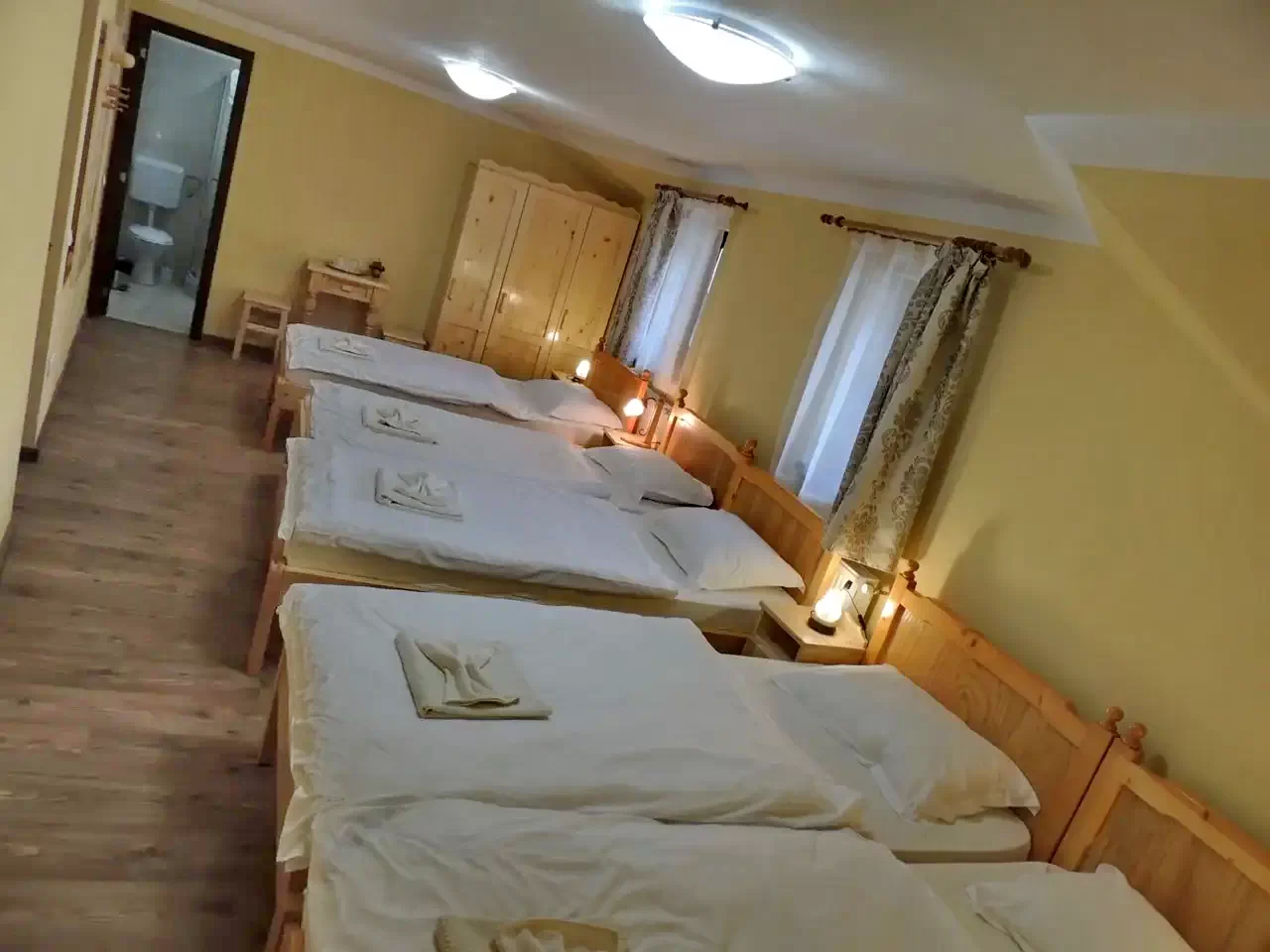 - A fenyőfából készült bútorok, ortopéd matracok és saját fürdőszobák biztosítják a vendégek maximális kényelmét.