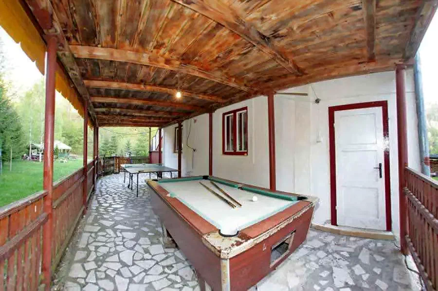 Rusztikus hangulatú, erdőkkel és patakokkal övezett épület, 14 szobában 38 főnek nyújt kényelmes szállást. Az épület csendes és meghitt környezete ideális a természetközeli pihenéshez.