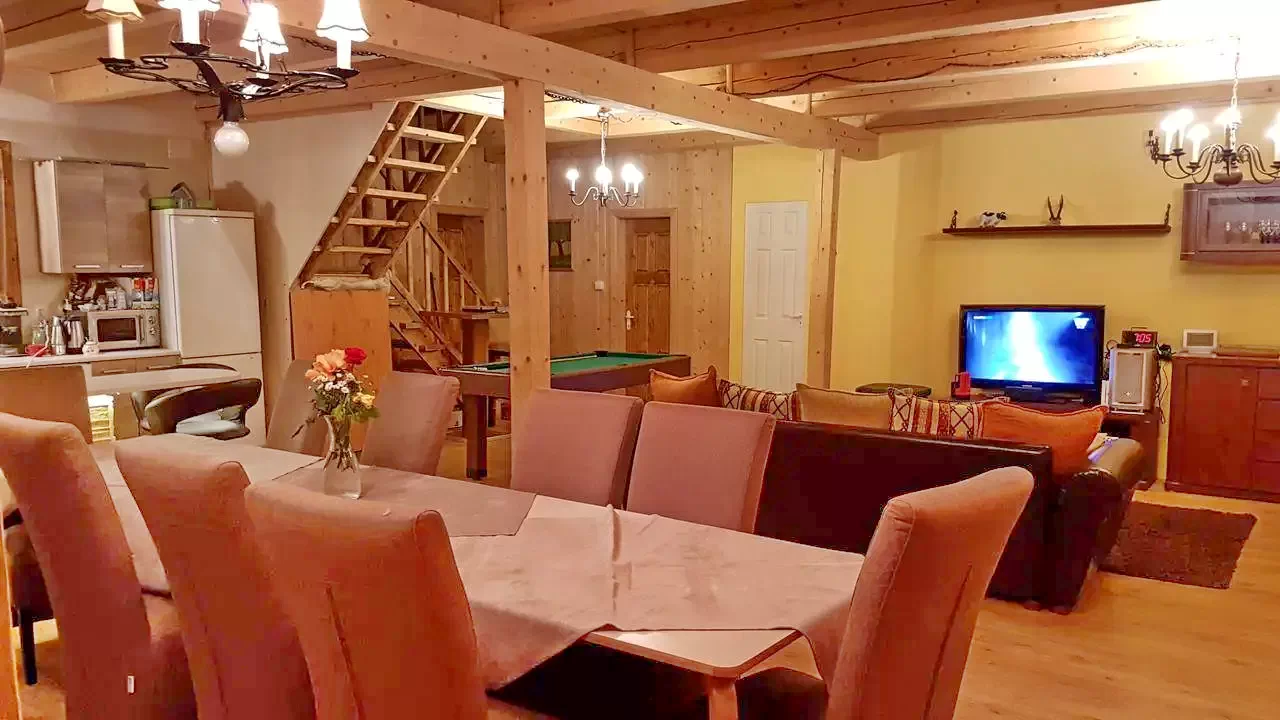 A kulcsosház földszinten, emeleti elrendezésben és tágas nappalival biztosítja a csoportok és családok zavartalan pihenését