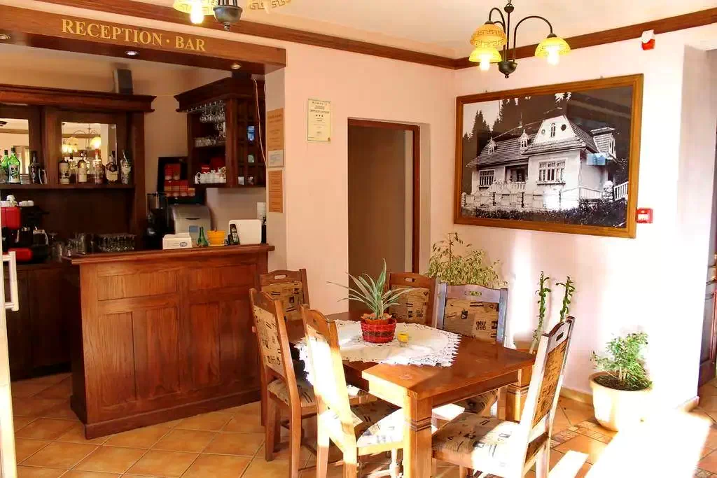 - Tágas 20 férőhelyes étkezővel, ellátással (reggeli, ebéd, vacsora), báral, konferenciateremmel és stílusus terasszal rendelkezik.