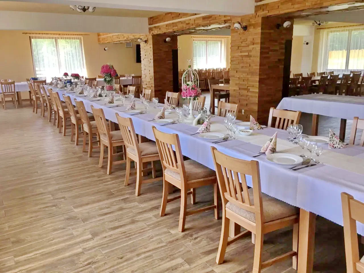Az étkezés a beltéri és kültéri rendezvényterem illetve étteremben (a panzióban és a tóparton) is felszolgálható.