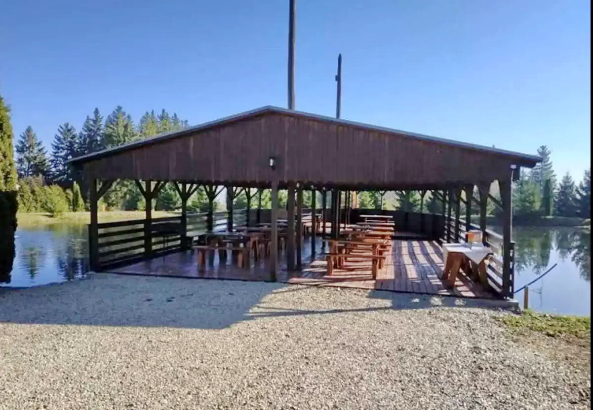 - A tágas zöld porta tóparti terasszal, cseberfürdővel, kerti bútorokkal felszerelt udvar, pavilon, kandalló, grill, bogrács, játszótér, horgásztó és parkolóval szolgálja szállóvendégei, kényelmes üdülését.