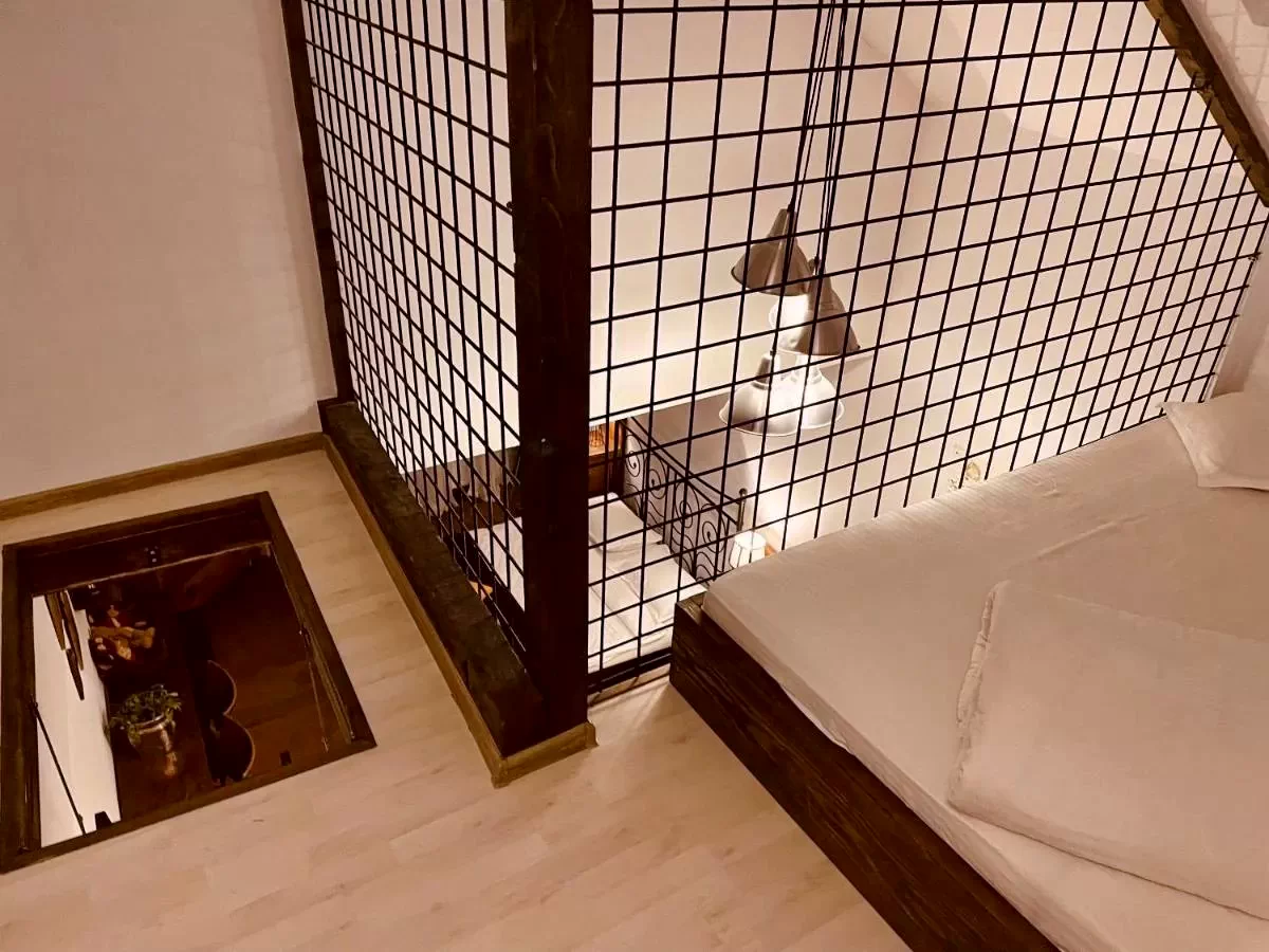 - 3. szoba: családi loft-szoba a villa emeletén, két szintes helyiségekből áll; az alsó szinten egy 160/200 cm-es ágy, a felső szinten egy 210/200 cm-es ágy található; a felső szintre fix lépcsőn lehet feljutni. A fürdőszobában walk-in zuhany van.