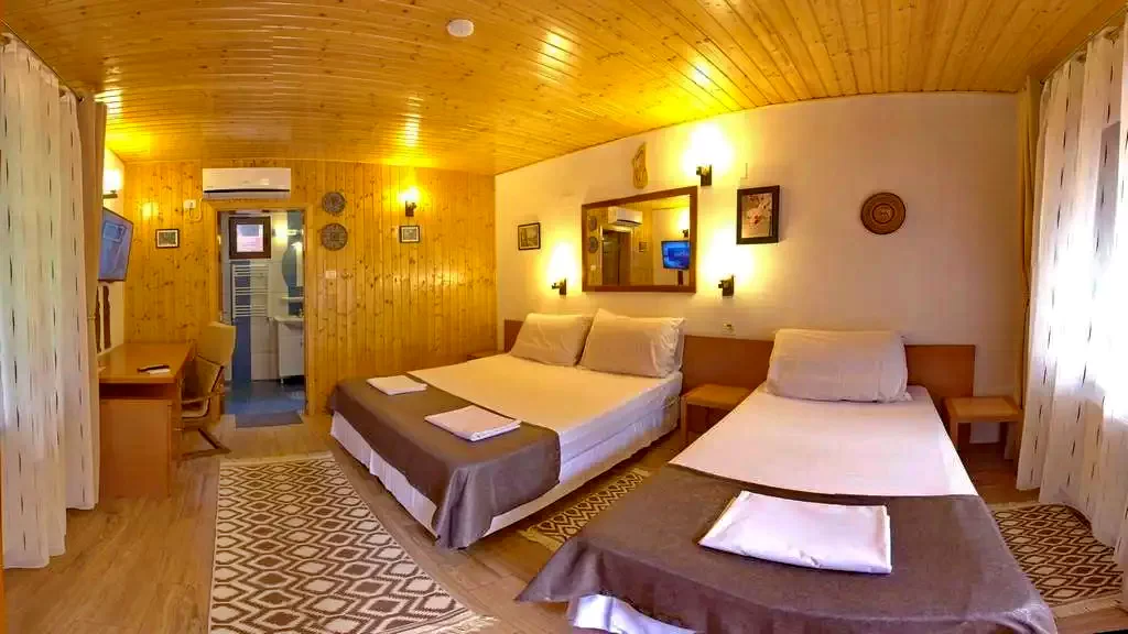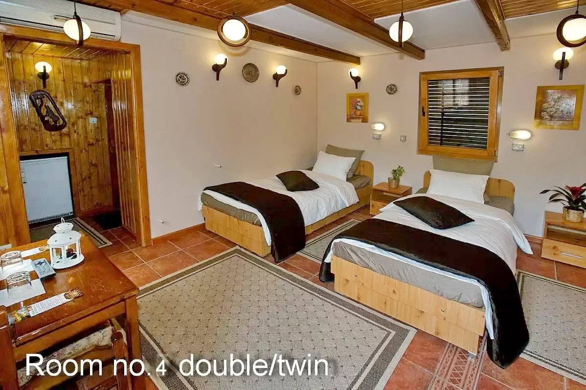 - Háromszemélyes szoba (benne franciaágy és egy egyszemélyes ágy)