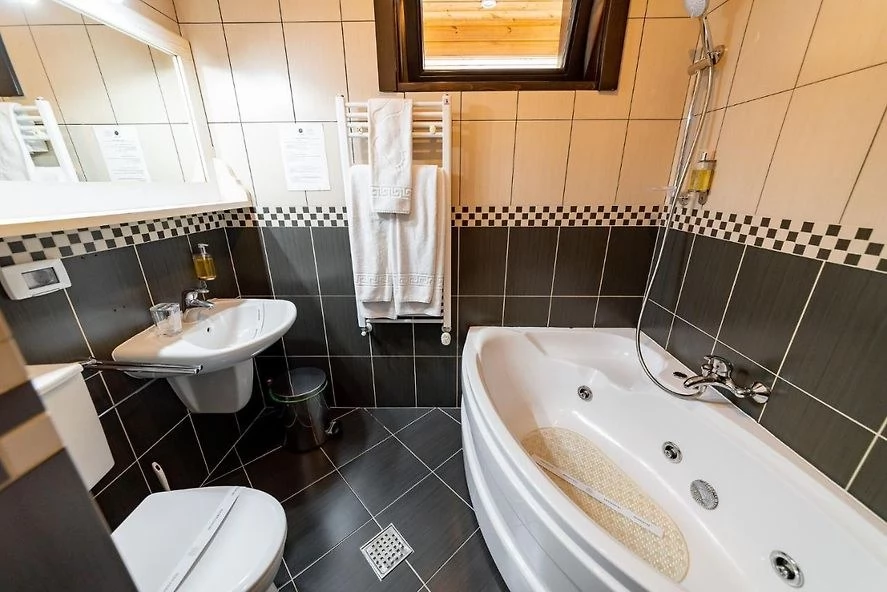 Franciaágy + kanapé, lég kondi, erkély, hűtőszekrény, jakuzzi, reggelivel, franciaágy, telefon, TV, hajszárító, hegyre néző, ingyenes WI-FI