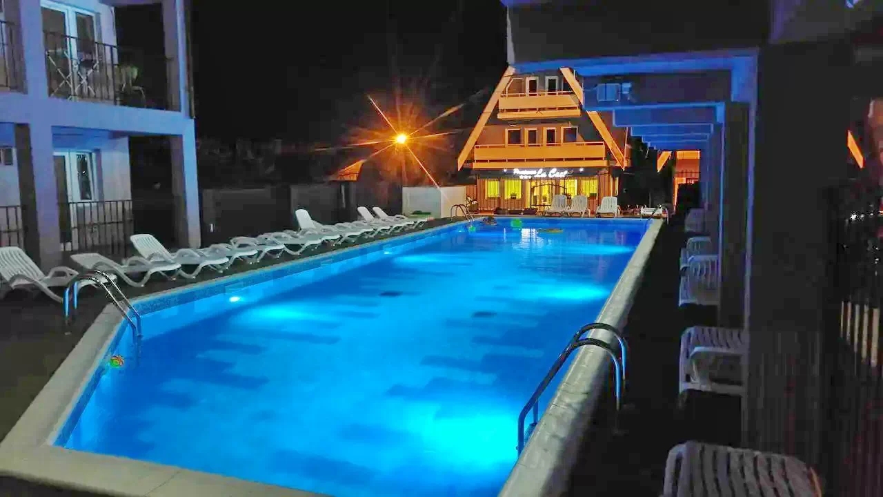 A komplexum kültéri medencéje az üdülőhely legnagyobbjai közé tartozik (20 m hosszú, 1,40 m mély), mellette napozóágyakkal, ahol szállóvendégei kávét, koktélokat vagy más italokat fogyaszthatnak a vendégház bárjából.