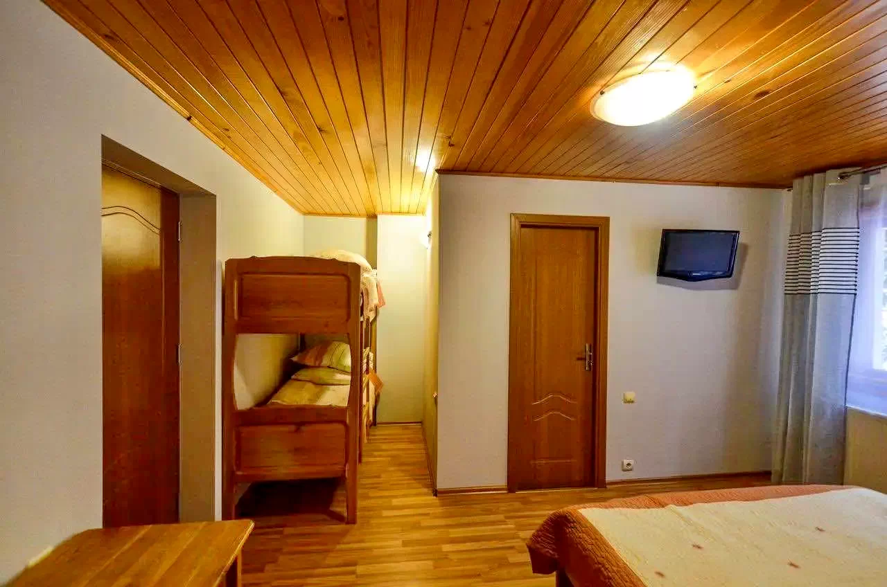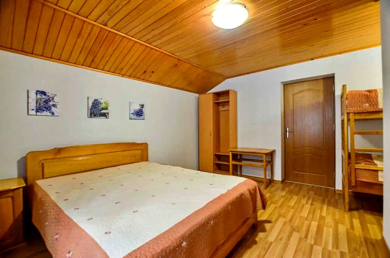 - 2 családi szoba (4 hely, franciaágy és emeletes ágy) saját fürdőszobával