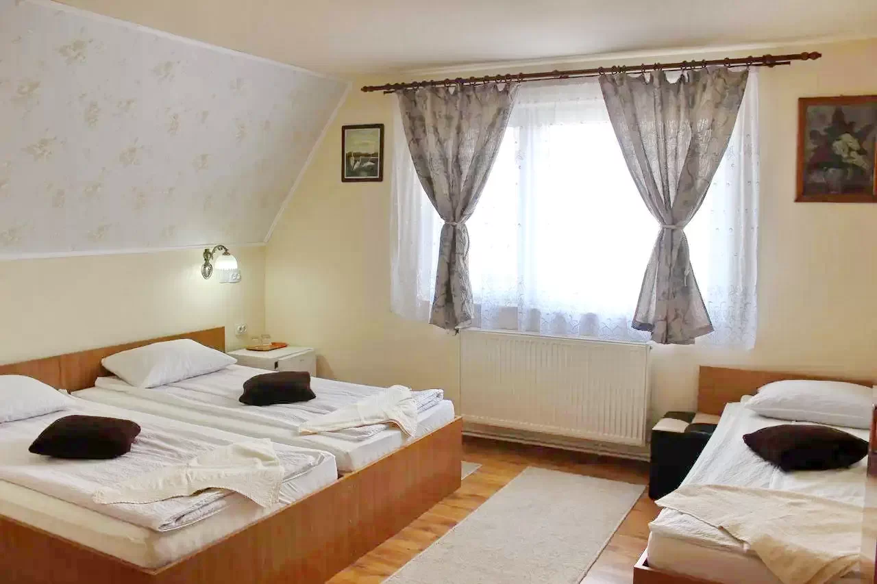 - 2 db 3 fős szoba 3 db egyszemélyes ágy, saját fürdő