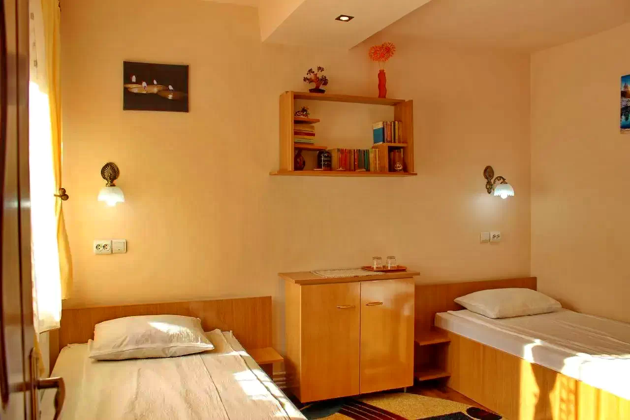 - 1 szoba 2 db egyszemélyes ággyal, saját fürdővel