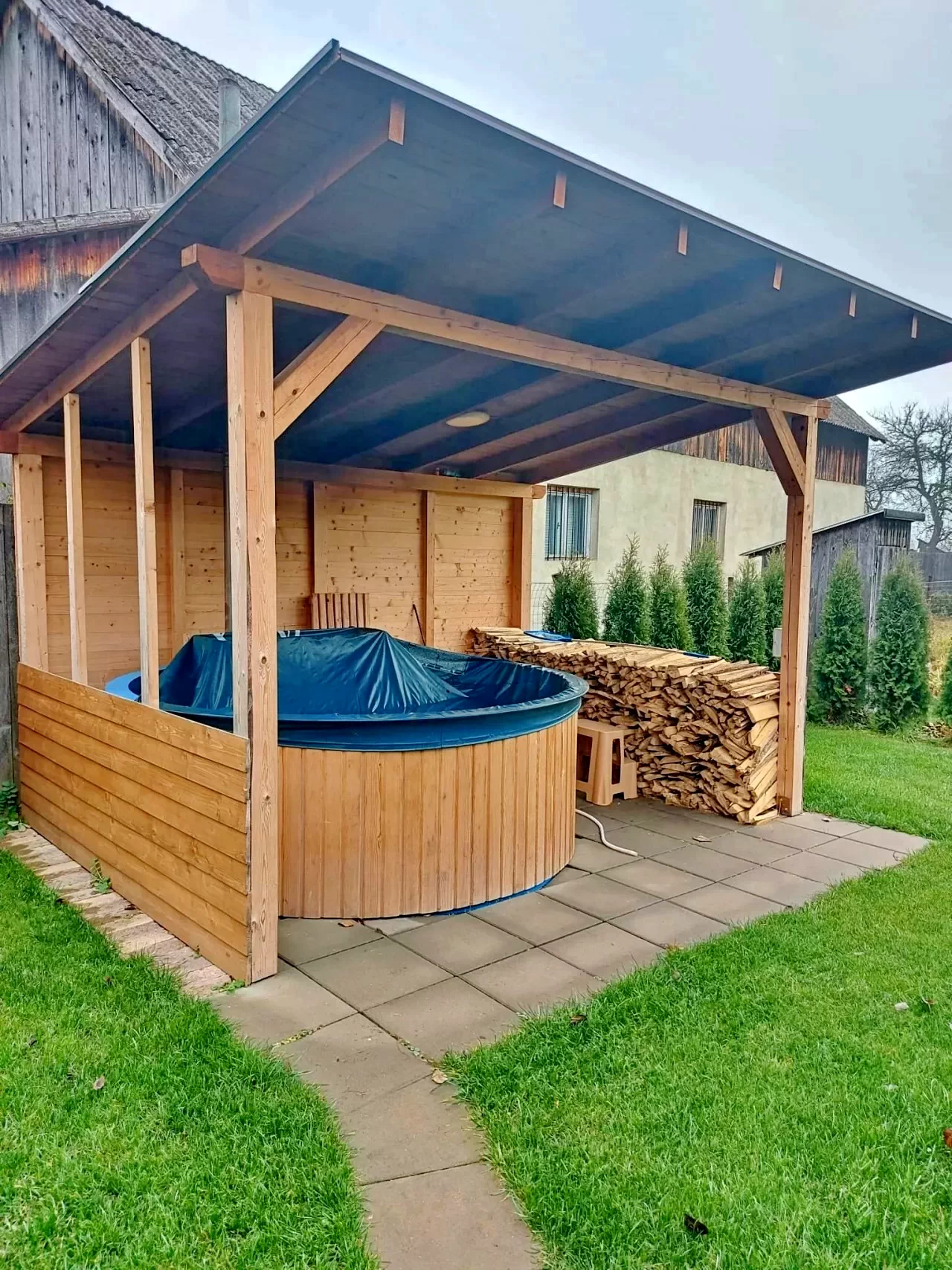- Az udvaron külön kialakított takaros épület (filagória) szolgál számos közösségi program helyszíneként.