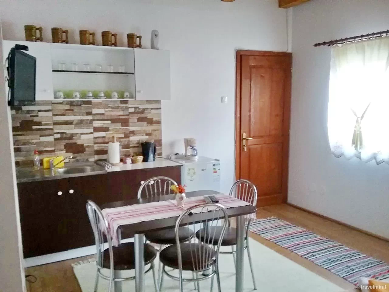 Az önellátáshoz felszerelt konyha, étkező, valamint tágas nappali szolgál. Kérésre igény szerint félpanziós ellátás is igényelhető.