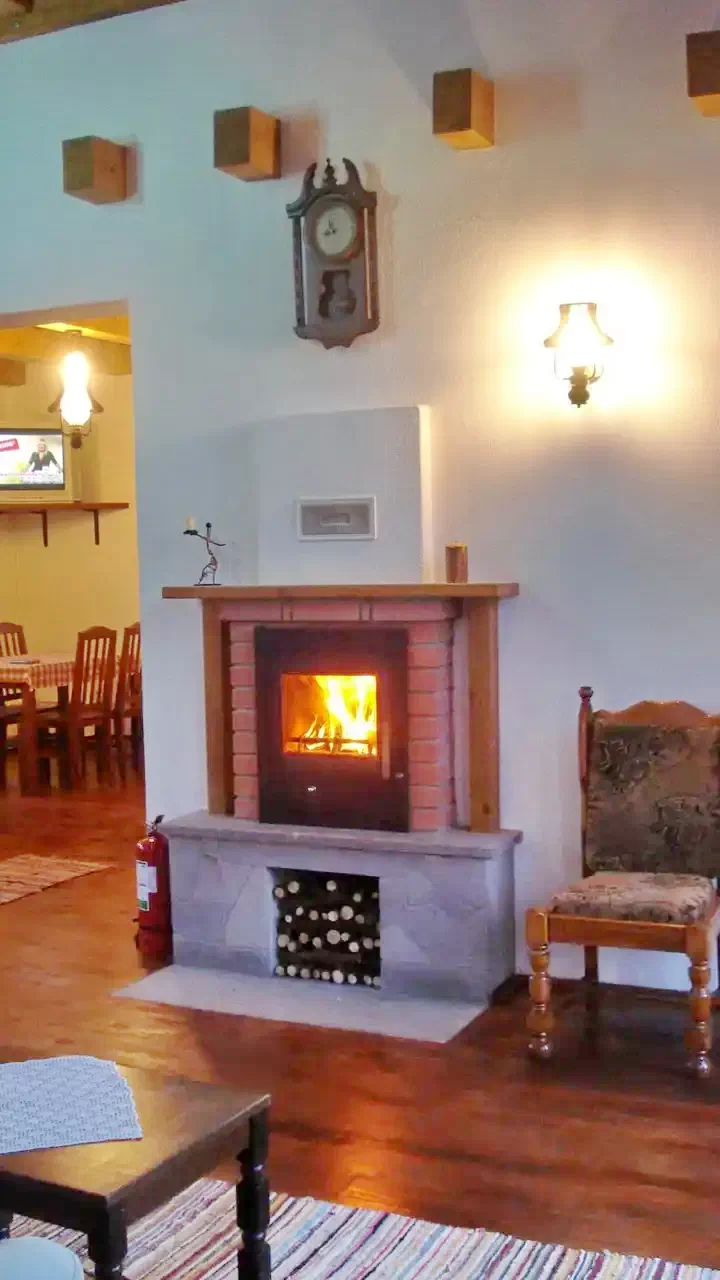 - Nagy nappali – vendéglő 22 férőhellyel, benne kandalló, nagy TV, Wc, illetve kézmosó helyiséggel. A panzió szálló- vendégeinek kiszolgálása, ellátása (félpanzió) itt történik.