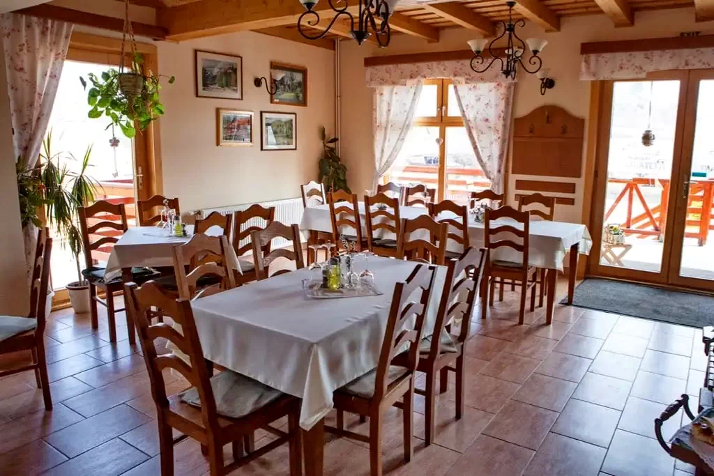 - A panzió hangulatos, 60 fő befogadására alkalmas étterme 8 és 22 óra között várja vendégeit. Az étlap kínálatában a magyar és az erdélyi konyha ízei harmonikusan ötvöződnek.