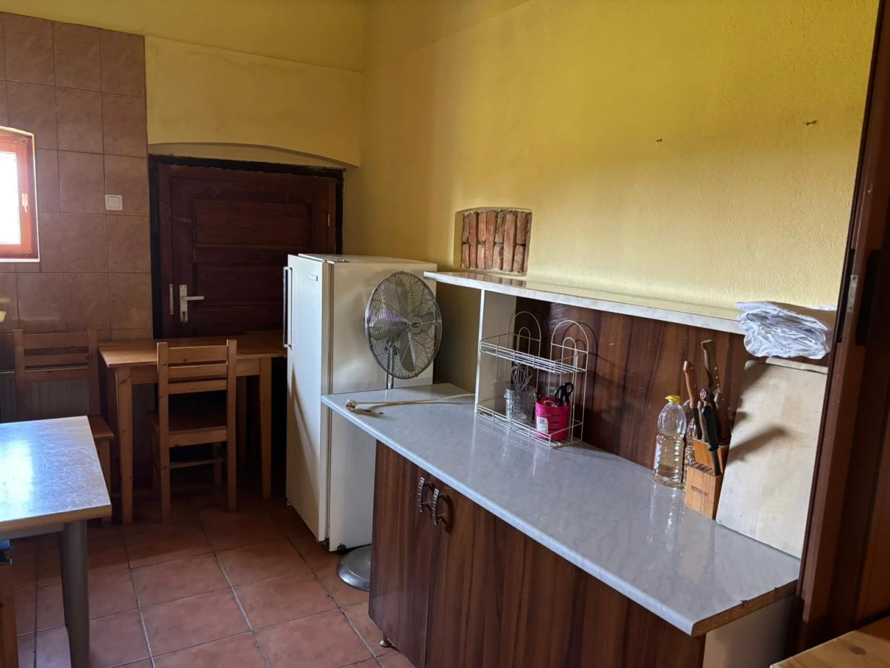 - Földszint: 40 fős rendezvényterem, egy felszerelt konyha, egy toalett.