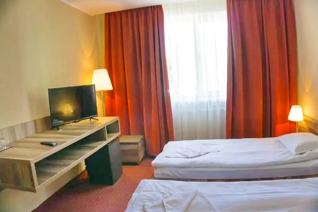 Szállás Szilveszter Csíkszereda Hotel** | A város központjában, étterem, bár-társaslgó, Wifi, konferenciaterem, kábeltévé, gyermekbarát, parkoló | 3 km Csiksomlyói sípálya, 17 km Balu kalandpark, 26 km Szent Anna tó