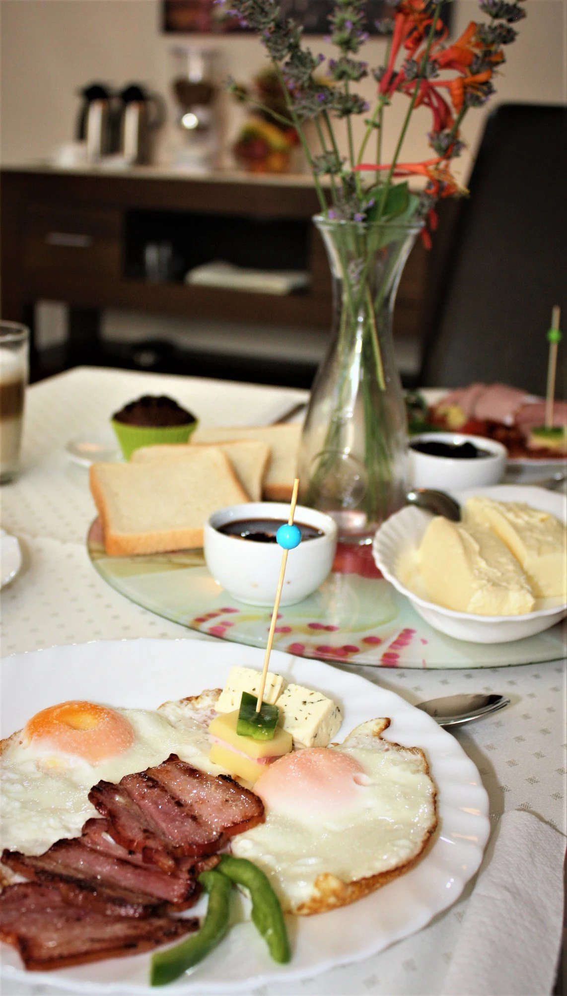- A panzió egy tágas étkezővel rendelkezik, ahol a vendégek nyugodt környezetben fogyaszthatják el reggelijüket.