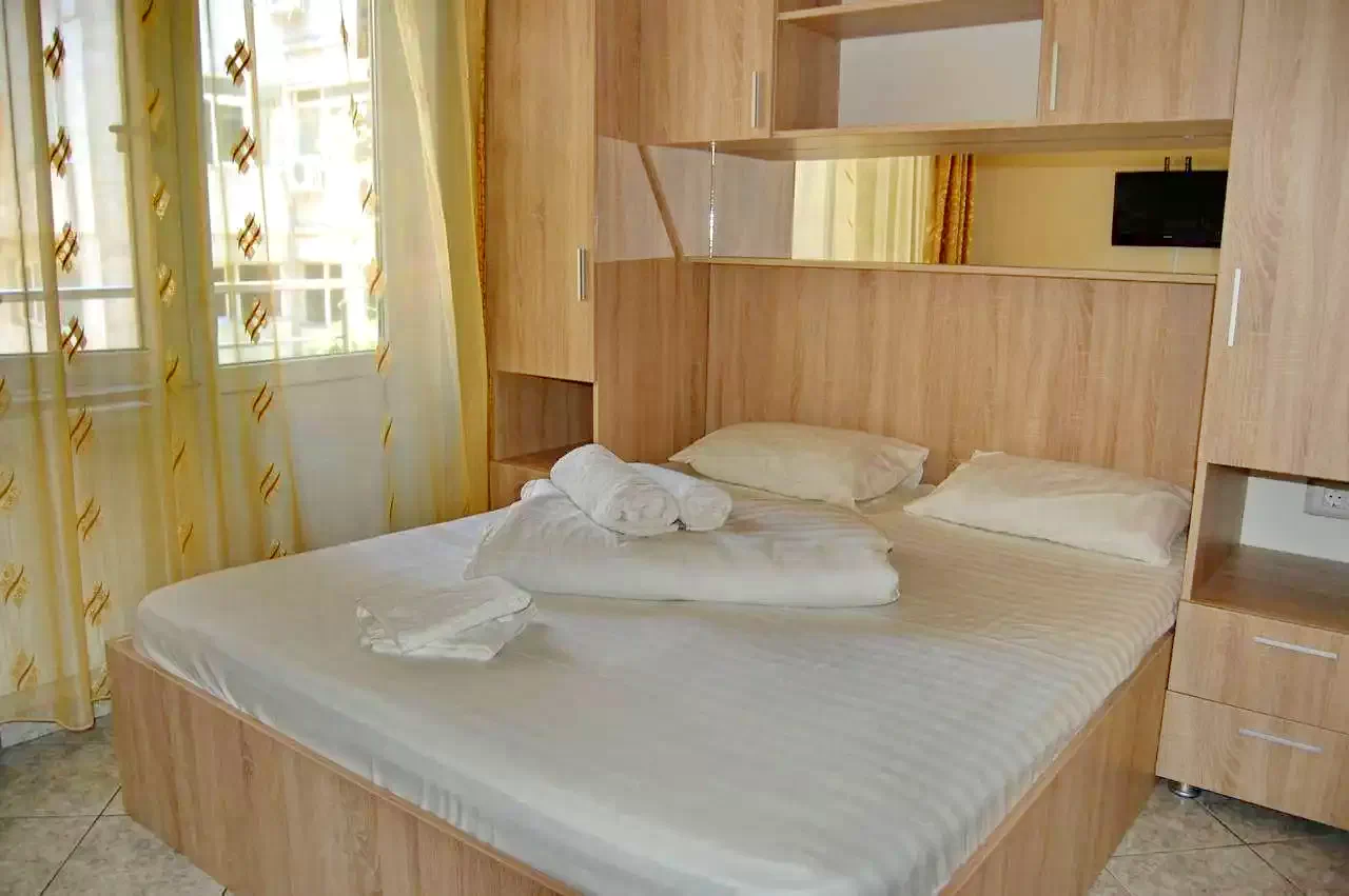 Van benne egy 160 / 2m franciaágyágy, saját fürdőszoba zuhanyzóval, tv, wi-fi, légkondicionáló, hűtőszekrény. 2 felnőtt + 1 gyermek befogadására alkalmas.