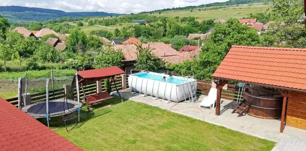 Szállás Szilveszter Farkaslaka Vendégház *** | Wellness: dézsafürdő, gyerekmedence, szauna; Vendégkonyha, étkező, ellátás, WI-FI, terasz, udvar, pavilon, grill, trambulin, parkoló | 11km Székelyudvarhely SPA, 19km Homoródfürdő sípálya, 21km Parajd Sóbánya