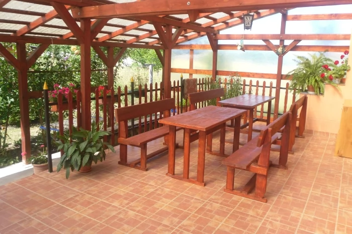 - Szállóvendégeit nagy terasszal, kerttel és udvarral, sok zöldfelülettel, pavilonnal, sütővel, grillezési lehetőséggel, játszótérrel, trambulinnal és az udvarban ingyenes parkolási lehetőséggel várja.