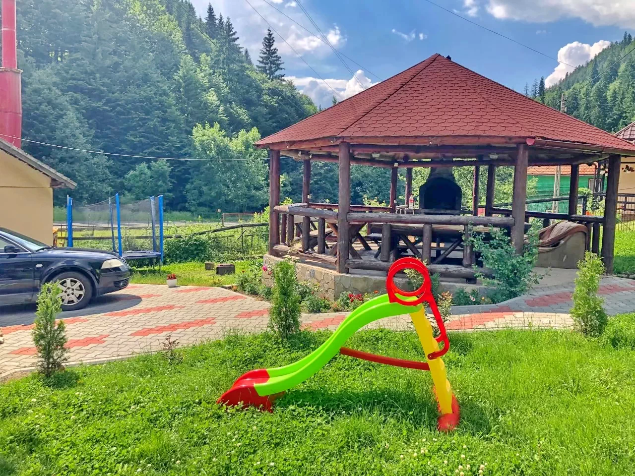 - Gyermekjátszótér (csúszda, trambulin)