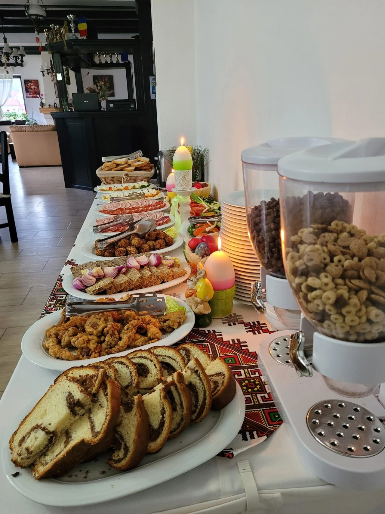 - Panziónk étkezési lehetőségekkel is várja vendégeit: az épület földszintjén recepció, 24 és 30 fő befogadására alkalmas éttermi szalon, valamint külső terasz és pavilon található grillezővel, kemencével és főzőlapokkal.