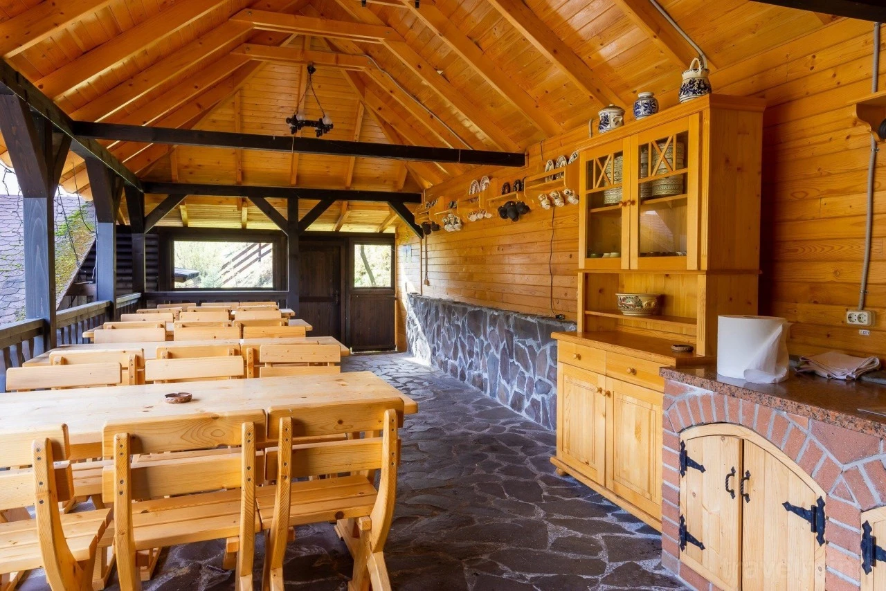 Földszint: recepció, éttermi szalonok (24+30 fő), kültéri terasz, pavilon, grillező és kemence, WC-k