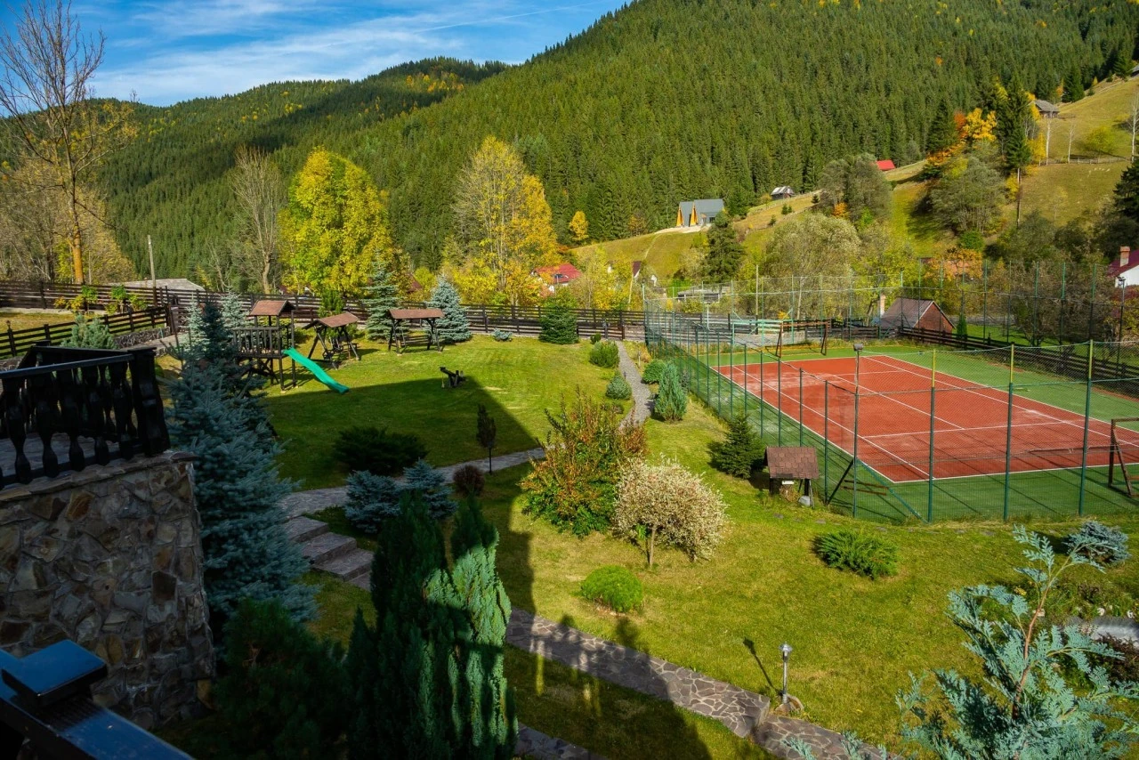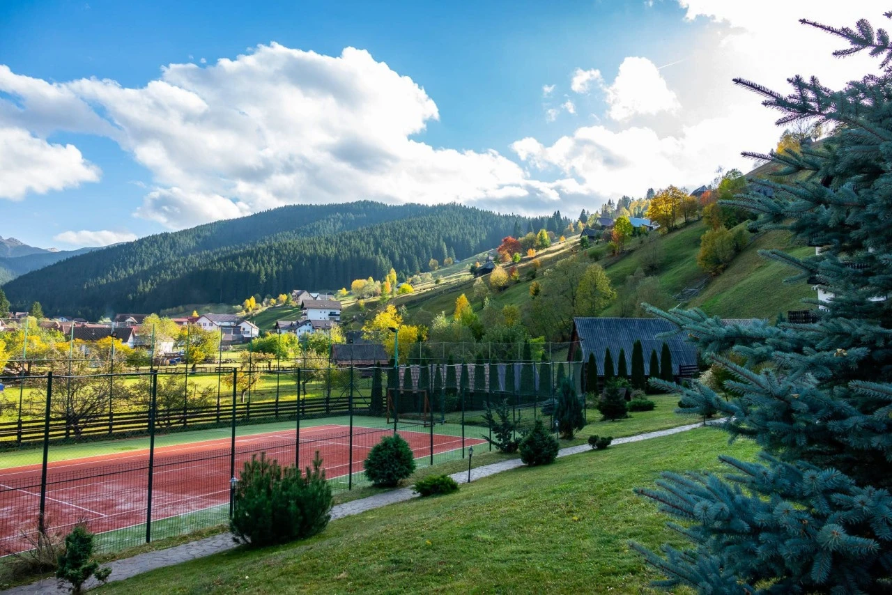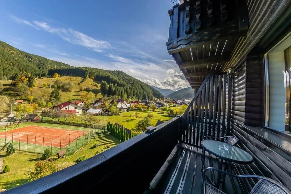 Szállás Szilveszter Felsőmoécs Panzió*** | Erdőszélen, 1100 m magasan, panorámával; Légkondi, étterem, konyha, WI-FI, terasz, kert, udvar, játszóhely, pavilon, grill, sportpálya, parkoló | 15 km Törcsvára Kastély, 11 km Bran sípálya, 29 km Hétlétrák kanyon