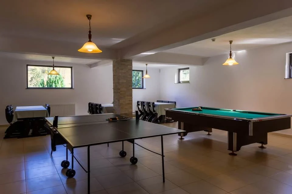 Földszinten: játszószoba gyermekeknek, biliárd és ping-pong asztal, csoportos szórakozási lehetőségek