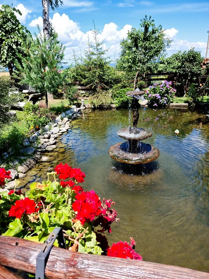 Szállás Szilveszter Felsőszombatfalva Panzió *** | Patak a kertben; Étkező, bár, WI-FI, nappali, nyáriterasz, gyümölcsöskert, pavilon, kemence, grill, bogrács, játszóhely, parkoló | 500m Brâncoveanu kolostor, 2km Arsenie Boca forrás, 2,6km Drăguș kalandpark