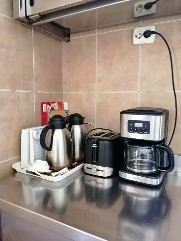 A két épület közös konyhája teljesen felszerelt (edények, hűtőszekrény, mosogatógép, tűzhely stb.) és kiválóan alkalmas önellátásra.