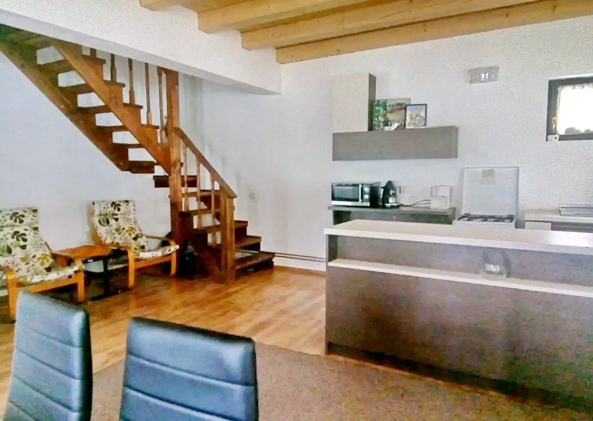 - Felszerelt konyhával, ebédlő-nappalival rendelkezik.
