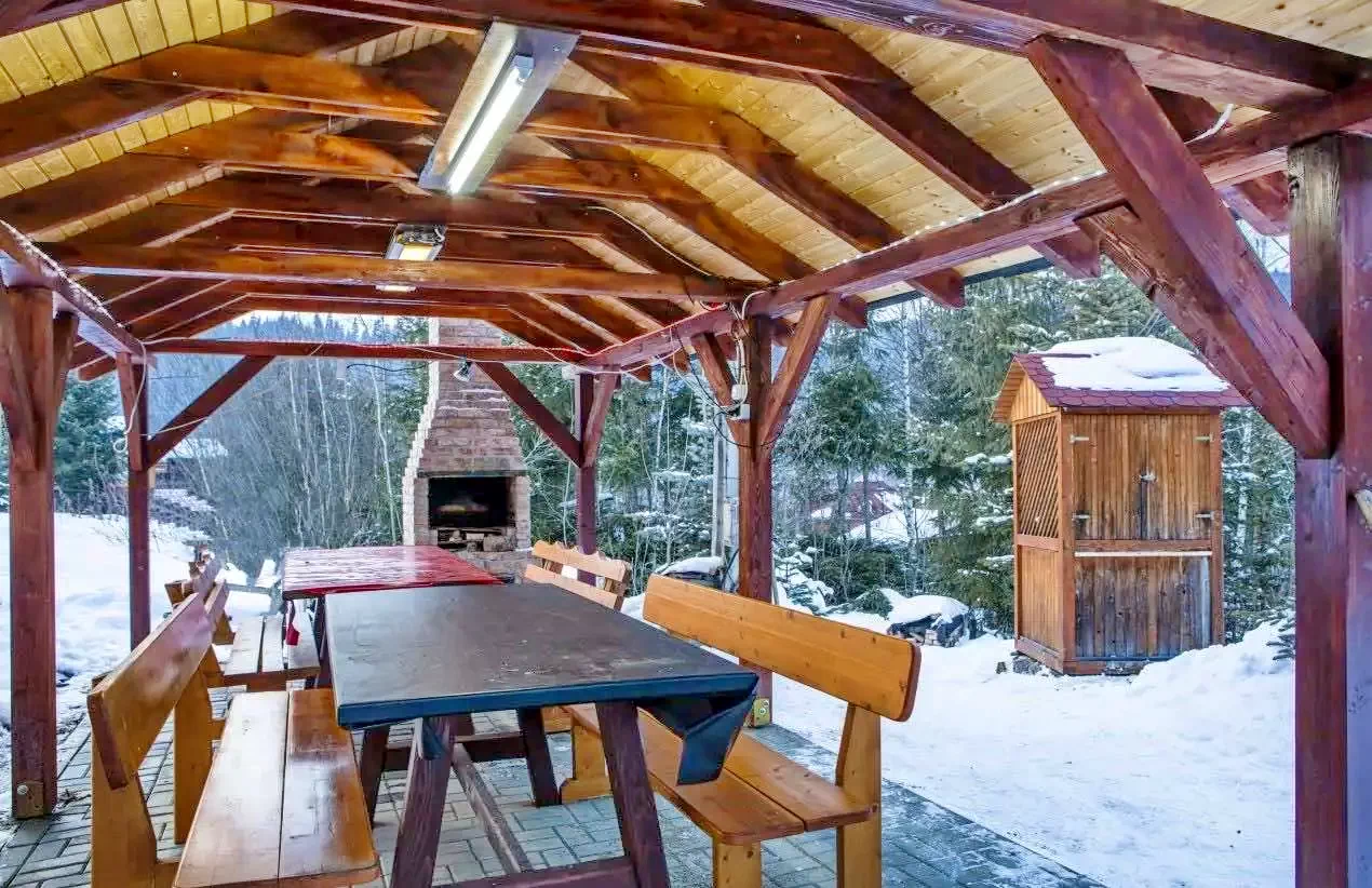 Szállás Szilveszter Gyergyószentmiklós Kulcsosház | Erdő mellett tisztáson, konyha, ebédlő, nappali, terasz, keret-udvar, WI-FI, filagória, kemence, grill, játszótér, parkoló | 13km a Gyergyócsomalvi sípálya, 26km Gyikos tó, 29 km Békás Szoros