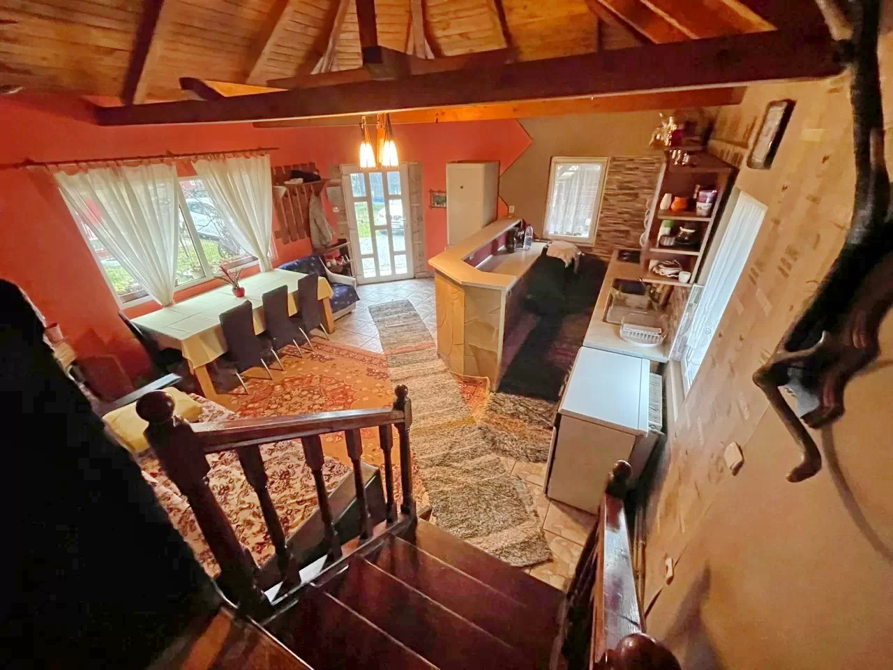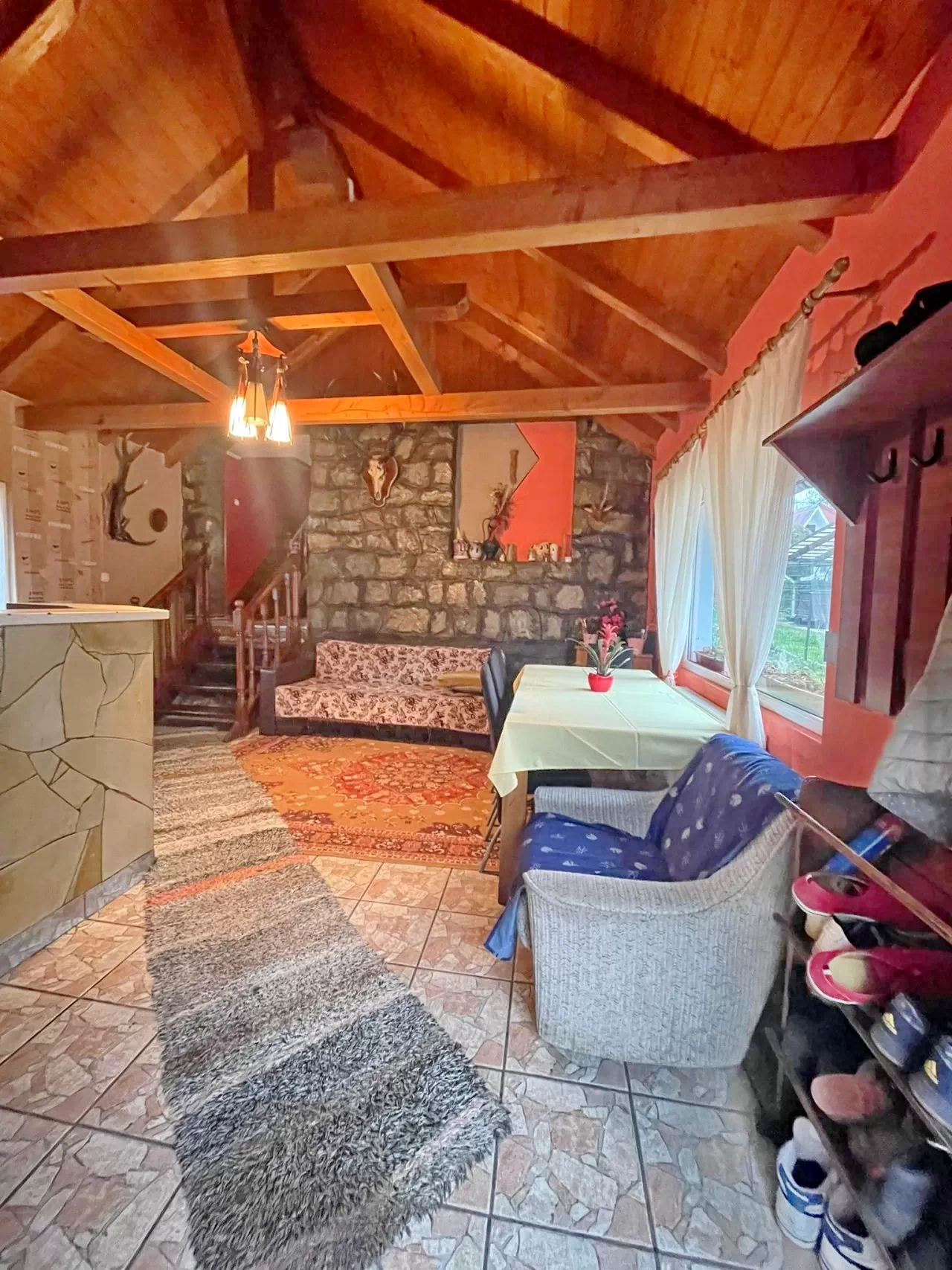 - Beltéri: A cabana központi fűtése (fapellet-alapú) garantálja a meleget, a nappali és a hálószobák kábeltelevízióval vannak felszerelve, a modern konyha pedig minden főzési igényt kielégít.