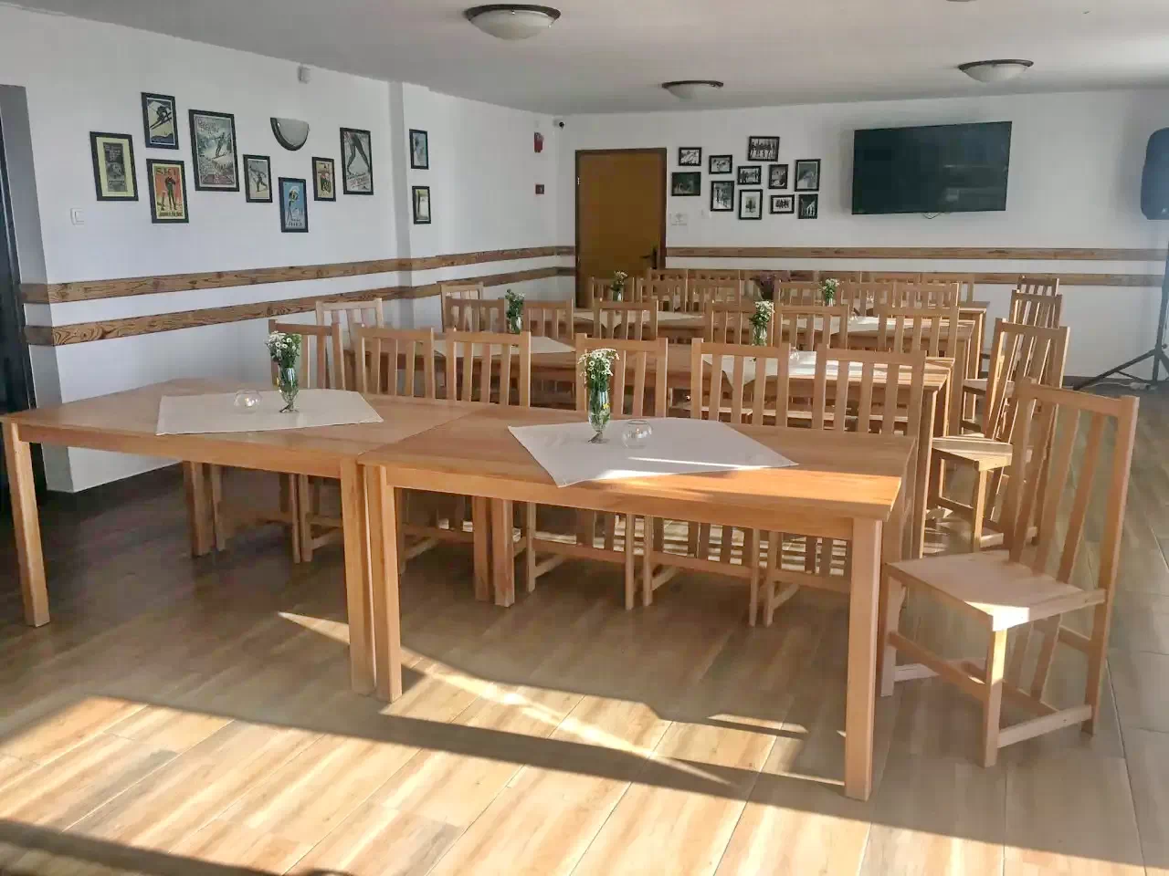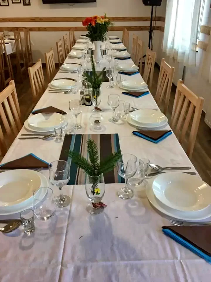 A panzió étkezője 50 fő befogadására alkalmas, ami kiválóan megfelel csoportos étkezések számára. Előzetes egyeztetéssel catering szolgáltatást is biztosít, akár teljes panziós ellátással.