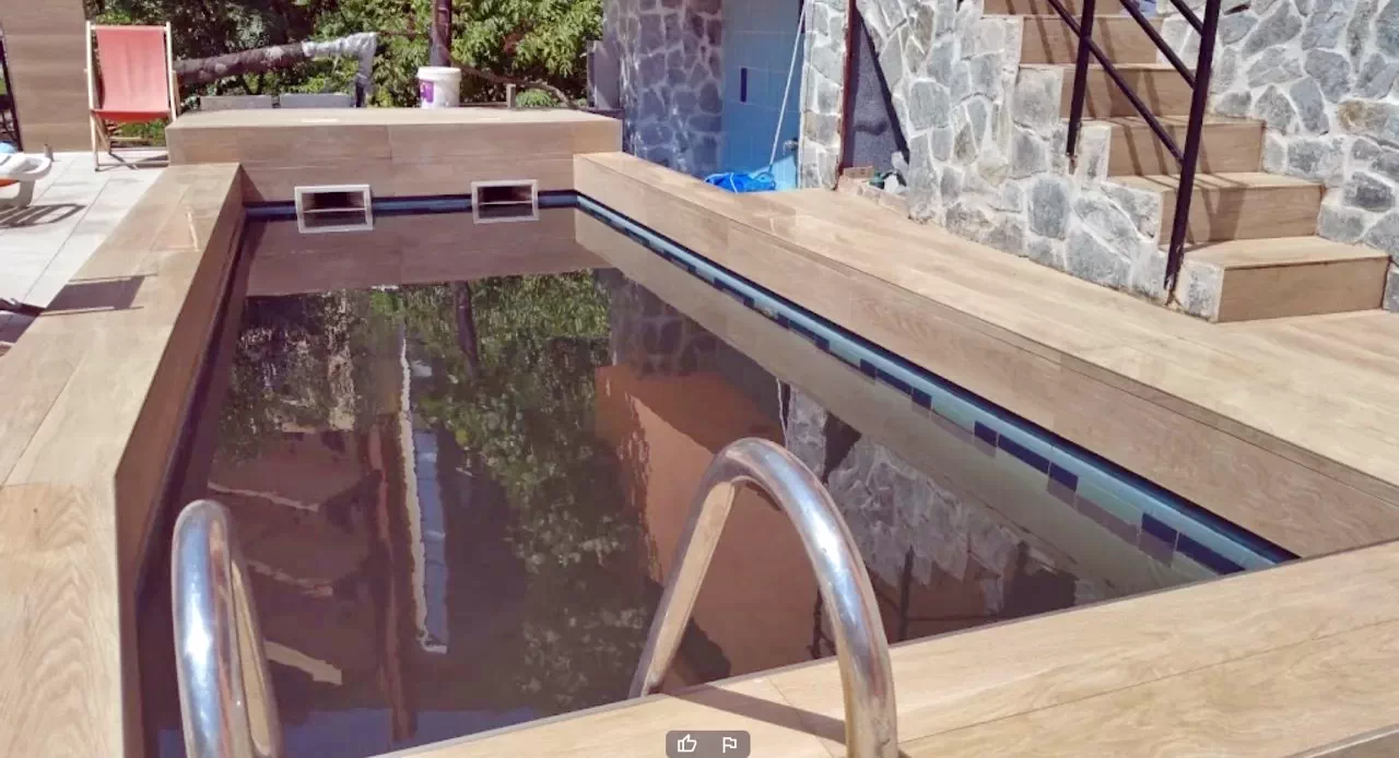A szabadtéri úszómedence a belső udvaron található, és a környék termálforrásaiból kéntartalmú termálvízzel van fenntartva.