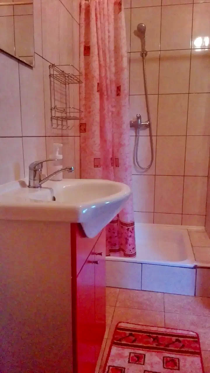 1 fürdőszoba (káddal, WC-vel), 1 külön WC.