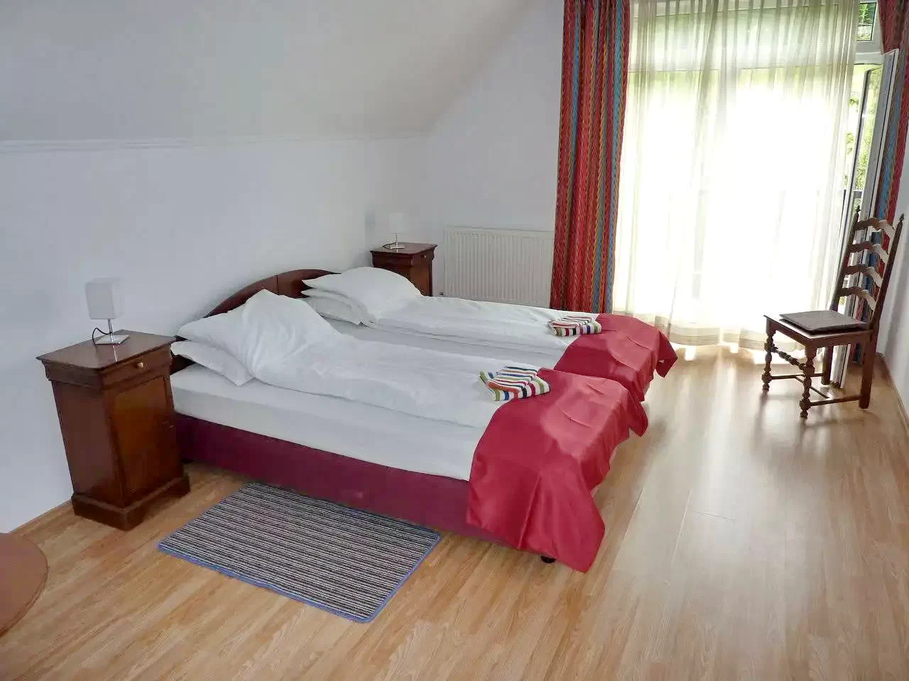 Földszint: 2 szoba, egyenként 3 egyszemélyes ággyal (6 fő + 2 pótágy)