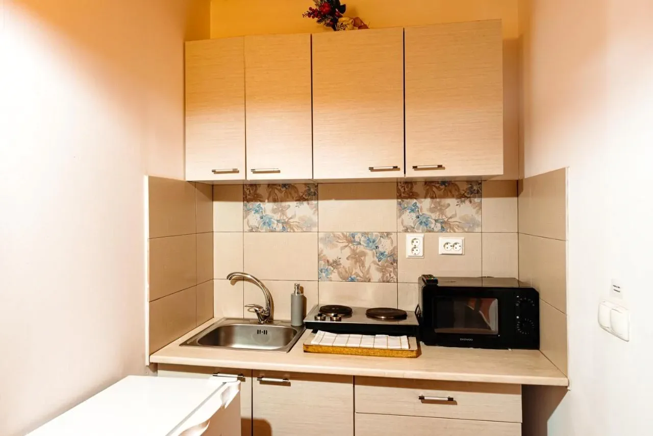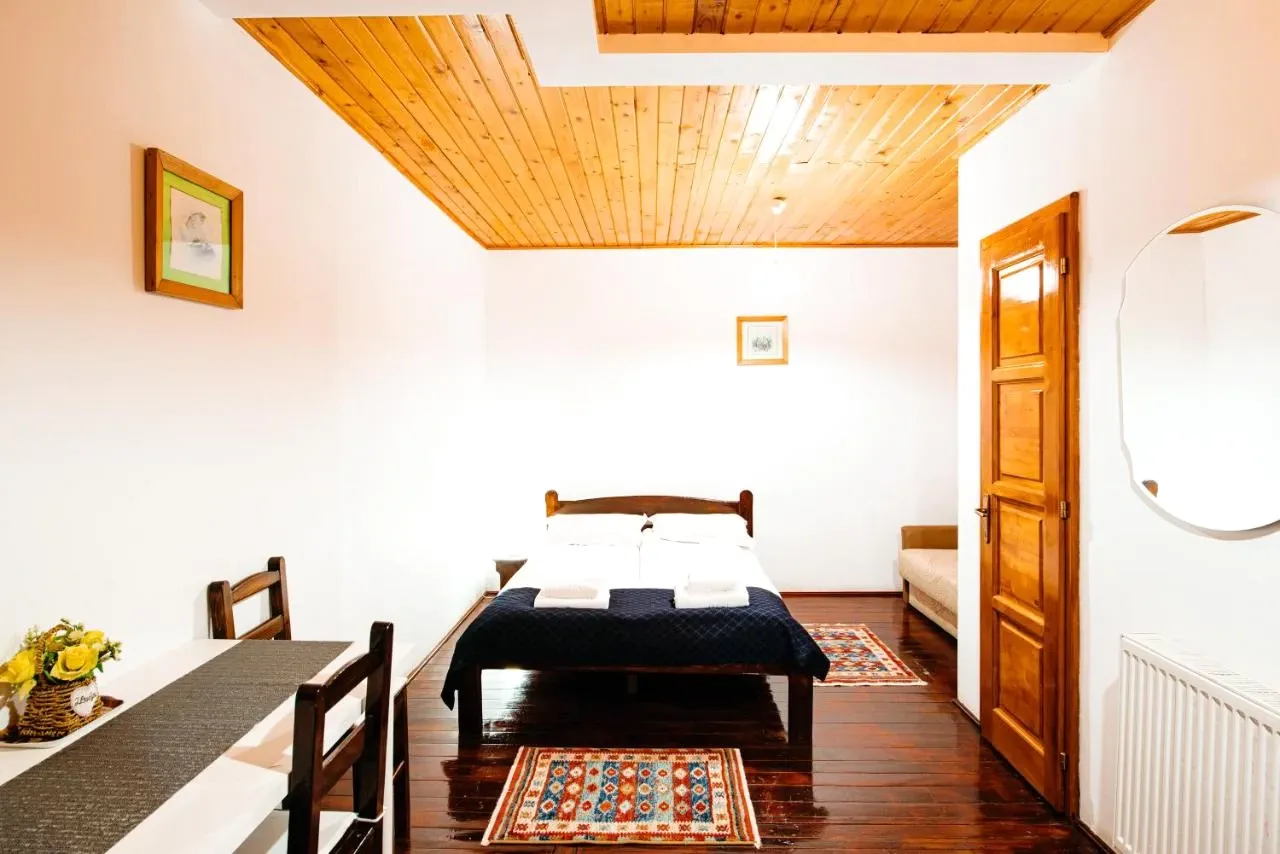 6 napfényes stúdió típusú elegánsan berendezett szobát kínál. Mindenik stúdió szoba hálószobával, konyhával és saját fürdőszobával rendelkezik. A stúdiószobák külön bejáratúak, mindenik a panzió folyosójáról nyílik.